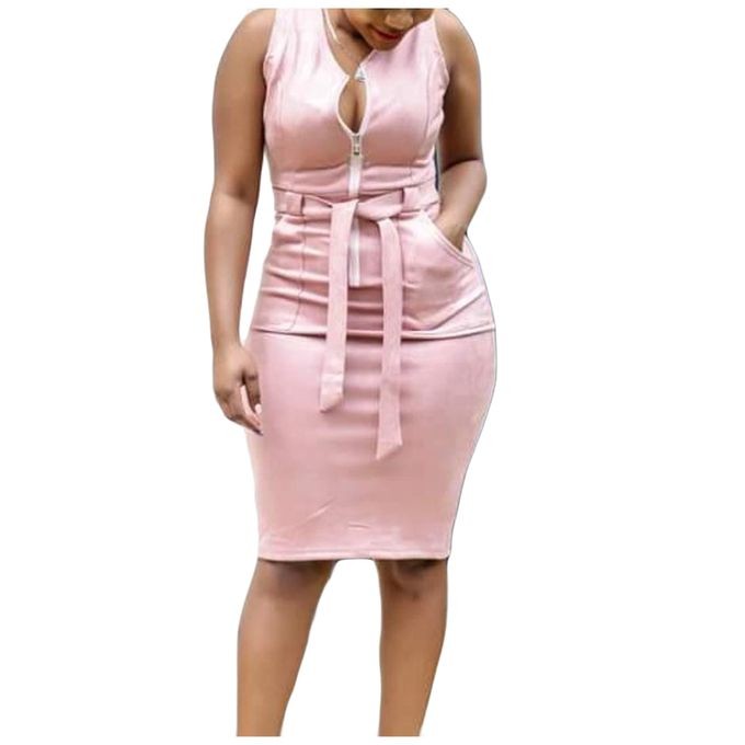 Every closet needs a better than basic dress. A waist belt and front zip closure complement this sleeveless dress. This dress is simple yet classy, allowing you to accessories to your own personal taste. This dress is an essential for your wardrobe. Bold up your look with this midi dress. This dress perfectly shows your charming body curve. Soft material, light and comfortable, a must-have dress in your wardrobe. It could be worn for daily, night club, evening, Office, cocktail, holiday and cocktail. Order for this women's dress online from Ndiema Market and have it delivered to your doorstep.